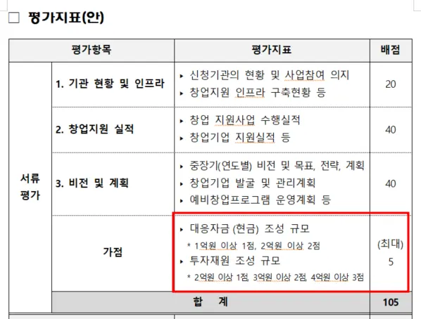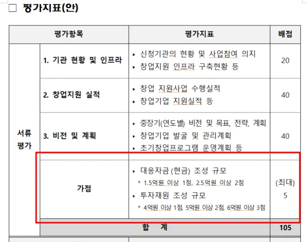 주관기관 평가지표에 5 점의 가점을 가지고 있음. 주관기관의 경우 2년 + 2년의 운영 기간 계약을 맺기 때문에 계약 연장 심사에서도 의미 있는 항목이 될 것으로 판단됨.