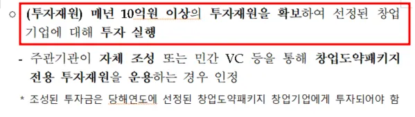 창업도약패키지는 매년 10억이상의 투자를 실행해야 함.