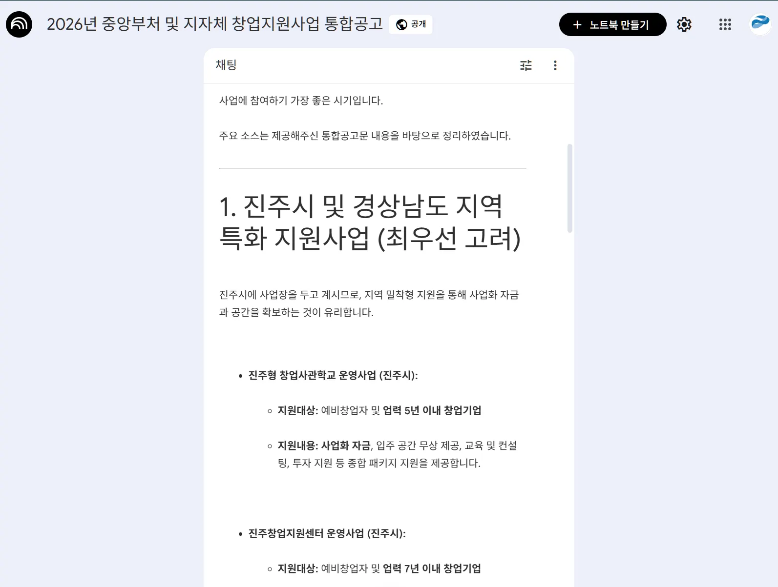 창업지원사업 공고 자료