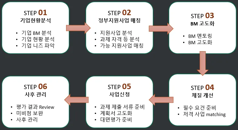 경험적이고 단편적인 지원사업 정보가 아닌 수만개의 DB화된 정부지원사업 분석 시스템을 통해 심도있는 정보 제공과 체계적인 서비스 관리가 가능합니다.